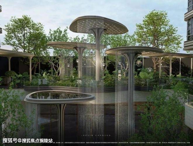 它也采用多见于豪宅新盘的风雨连廊,打造风雨无阻的归家体验的同时。风雨连廊的造型与景观巧妙呼应,别有意趣。