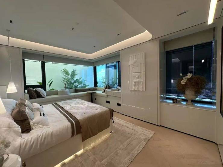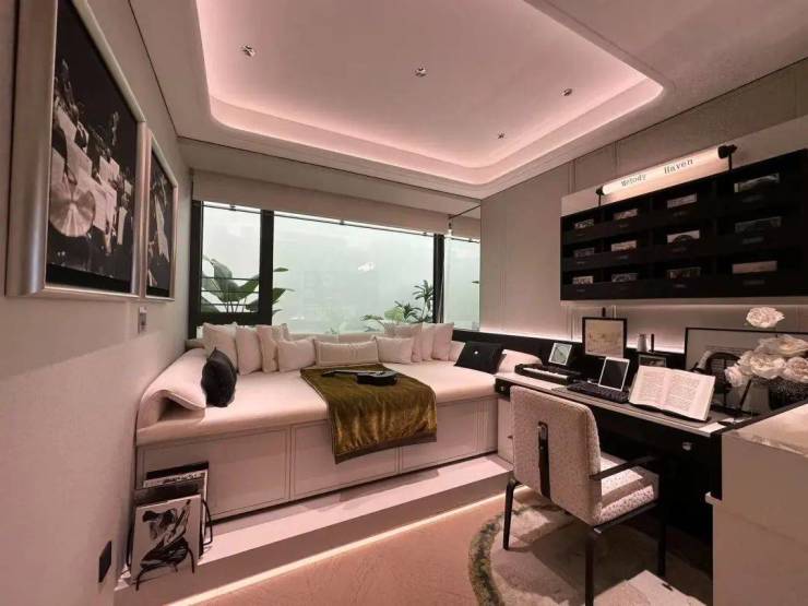不同于市面上门是门,框是框,墙是墙,看房时“五颜六色”。外滩瑞府室内采用一体化设计语言,实现空间、色彩与材质的协调统一。比如