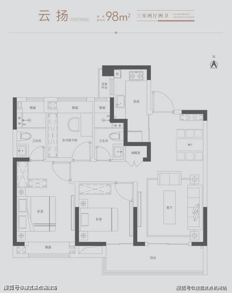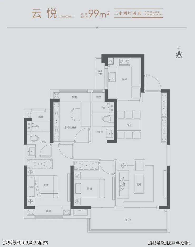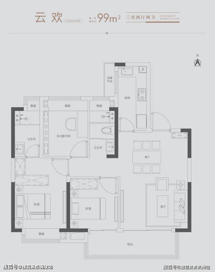 雅致三房:满足三口之家所需,北向房间可改造书房,理想生活一步到位