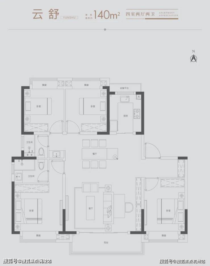方正格局:全明阔绰四室、约13.4M南向四开间,打造尊荣生活格局