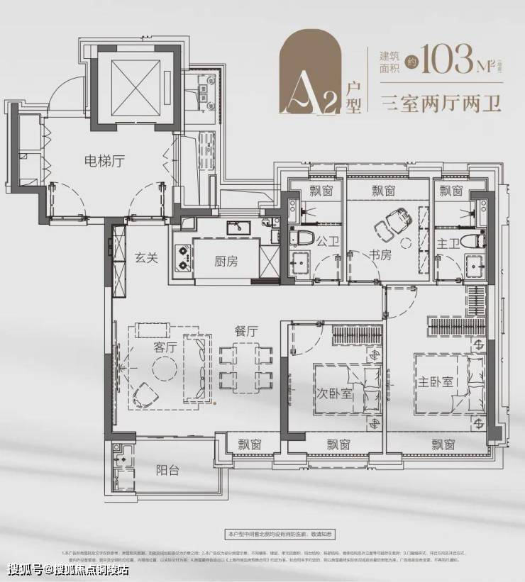 这套建面约103㎡动静分离户型打破常规,兼具三个房间和南向超阔面宽的横厅,以此承载从二人世界到三代同堂的全生命周期需求。