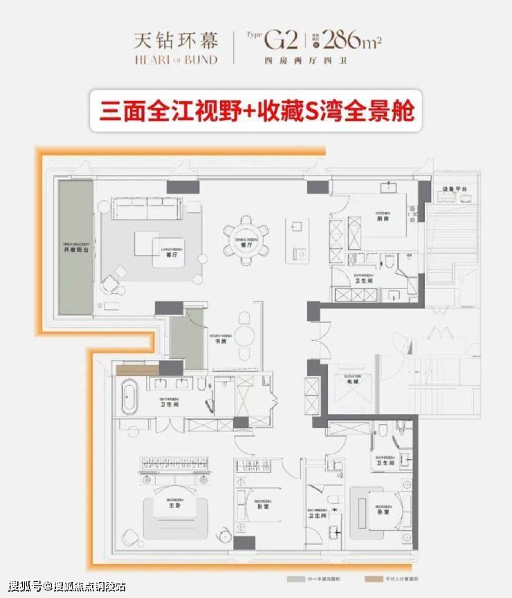 创新蝴蝶布局+真三面视野+超大全景画框+全套房设计。直面S湾,三面看江,纵享S湾全景舱360°寰视江景巨幕。真正划时代的滨江顶豪。