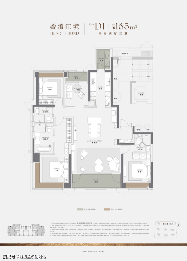更难得的是,项目185㎡户型堪称上海滨江之上的园境栖居典范。