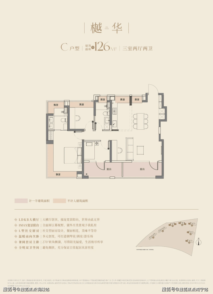 建面约126㎡三房两厅两卫,南向的总体面宽达到惊人的约13.2m,可以媲美市面上很多150㎡起步的豪宅产品的面宽了。