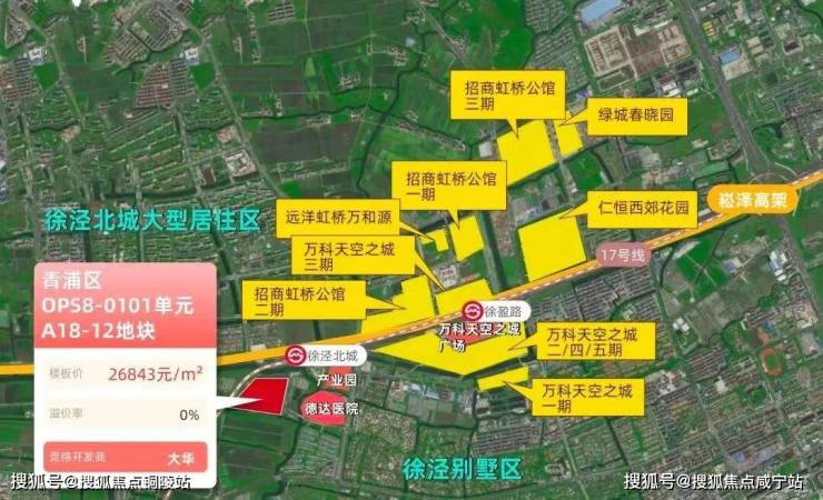 项目周边配套也是令人惊喜。交通上,项目北侧紧邻17号线徐泾北城站(需绕行河道),1站可达徐盈路天空万科广场,2站至蟠龙古镇商业区,3站直达国家会展中心,4站即达虹桥枢纽。