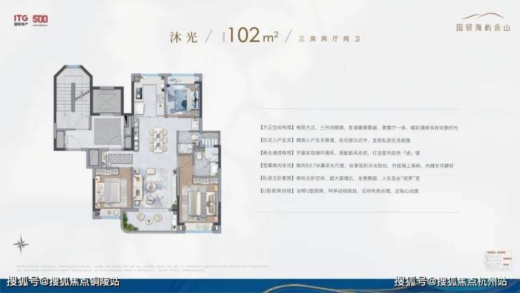 市面上大多百平小三房,都是“伪”三房,实际使用起来空间十分局促。国贸海屿佘山户型设计优点:客厅阳台约270度采光体系+南向双飘窗+北房间也能够作成卧室,无连廊的飞机户型,整体的得房率做到了78-80%。