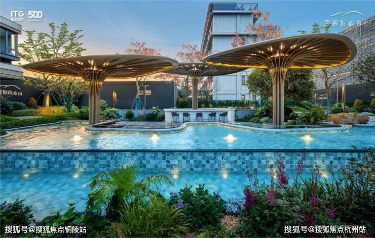 一心:建筑面积约1600㎡度假酒店中岛,打造大隐于翠的梦想桃源。中岛内拥有海岛风层叠水池、社交客厅以及庭院架空层,加上约50年树龄的乌桕点缀,共鸣多样化松弛生活场景。