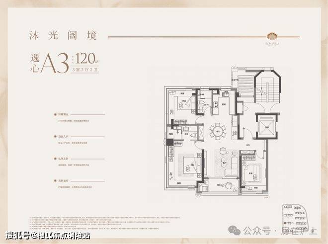 功能优势 :动静分区合理,主卧套房设计,私密性较好。适合改善型家庭,兼顾实用与舒适。
