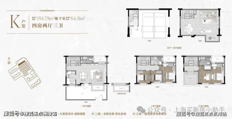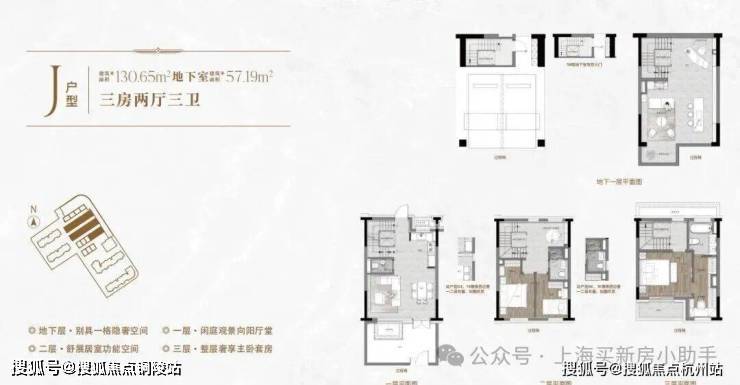 一楼和地下室主社交和志趣,二楼是子女的房间,三楼是主人休憩区。