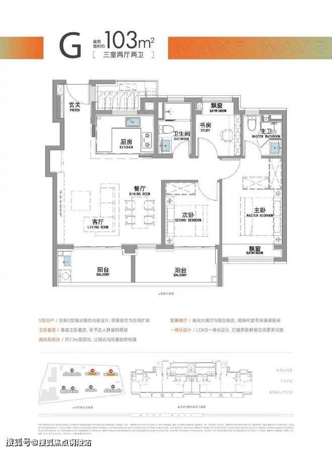 “南向双阳台+南北双飘窗”,构筑真3房户型!