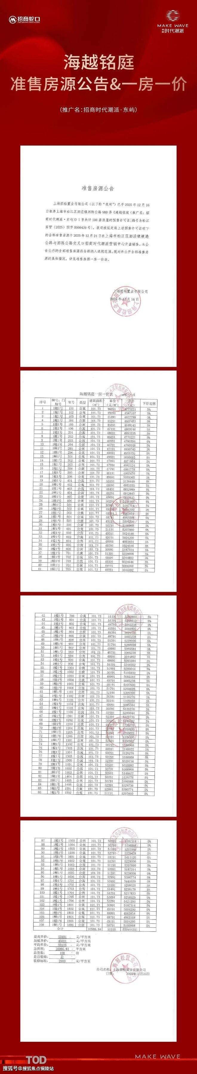 2024年1月10日,经过56路竞价,最终招商以52.5亿摘下松江区泗泾镇SJS20005单元14-01、16-02、17-07号地块,地块位于9号线泗泾站北侧,出让面积129624.71㎡,房地联动价51100元/㎡,装标2500元/m²(集采价)。