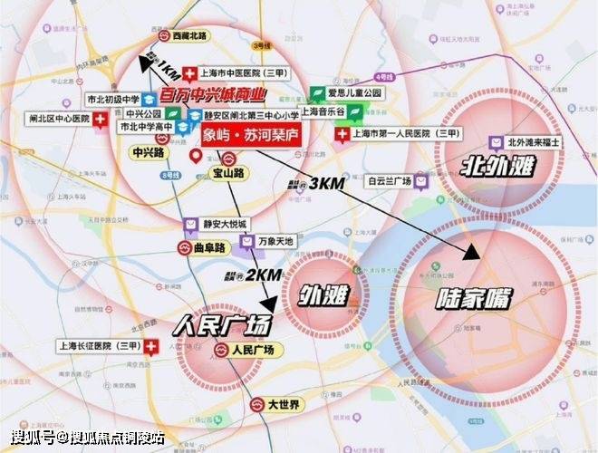 【商业】直线约300米可达中兴公园和交通公园,距静安大悦城、万象天地、宝格丽酒店、苏河湾世界级滨水商务区等配套直线约1KM,距人民广场直线约1.5KM,周边聚集了超21家跨国公司地区总部,约3KM国际生活圈,涵盖陆家嘴、人民广场、静安寺、南京路、外滩、新天地等繁华CBD都市生活圈。