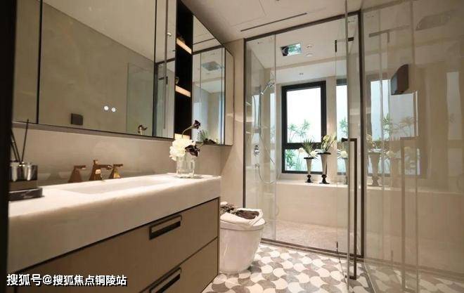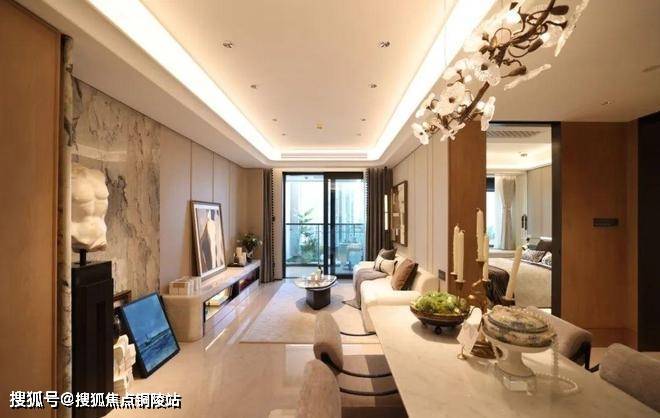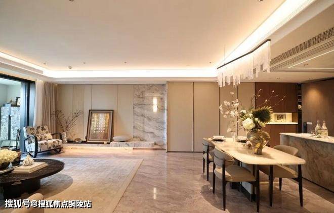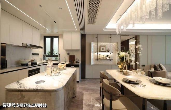 来到建面约112㎡3房2厅2卫样板房,设计主打海派风格,开放式厨房和西餐岛台,卫生间地面拼花,石材台面镀金龙头。标准的三开间户型,设计上将传统的过道改为餐厅空间,将公共区域做大了。