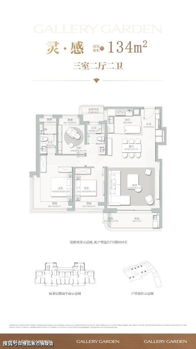 装标,大金的中央空调和地暖,白朗新风。厨房标配博士的三眼灶、油烟机、洗碗机和冰箱,134加配蒸烤一体机;卫生间高仪的洁具和花洒、科勒的龙头。