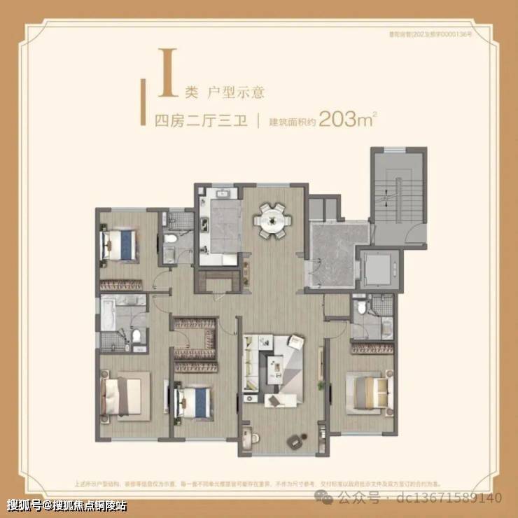 【建面203㎡4居】1700-1900万,4室2厅3卫, 南朝向,楼栋分布于10号楼