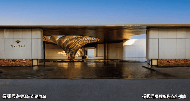 酒店式归家环岛的中心,海上·清和玺原创设计了艺术装置,海派漩心。首创经典山茶花图腾设计,其装饰符号源于海派建筑中的山茶花图腾,设计师通过现代的手法将其以立体的方式重塑在环岛落客空间。