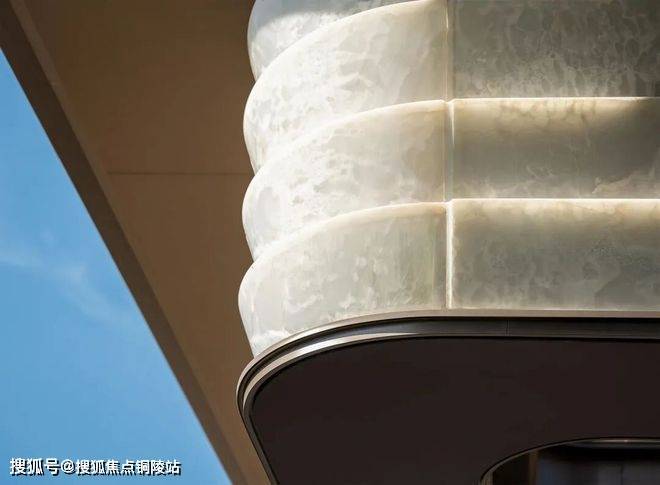 而西入口门头的设计灵感,则取自张江地标“科学之门”的金色塔冠,远远望去,像一个精致的“玲珑宝盒”。