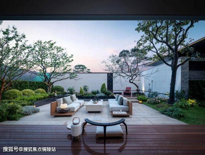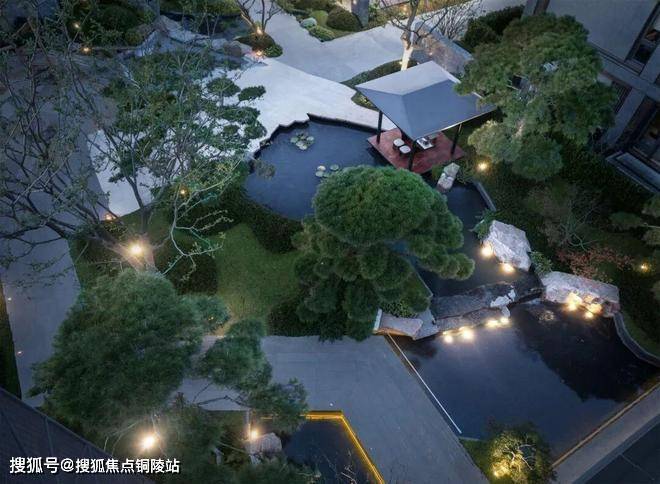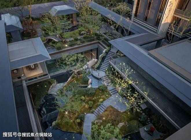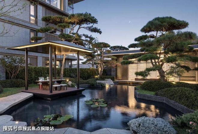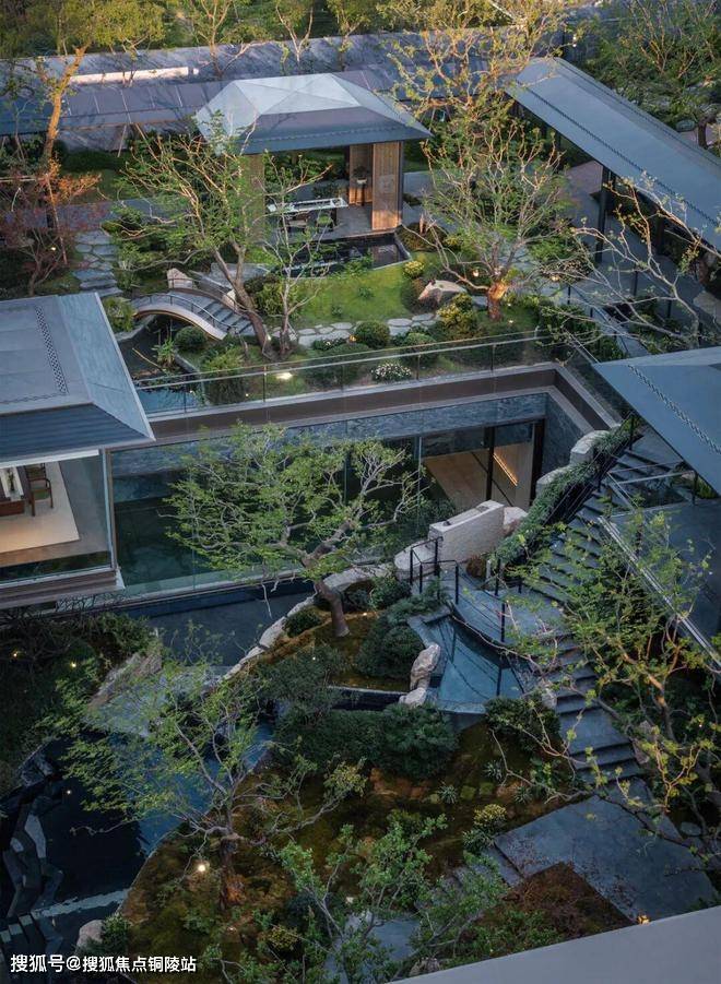 庭院的选材也极具讲究:太行山金景石堆叠成小山丘,岭南古桩铁冬青与中华原生乌桕树移栽而来,蕴含“聚财守业”的美好寓意。细节之处,经得起推敲,让人越看越有味道。
