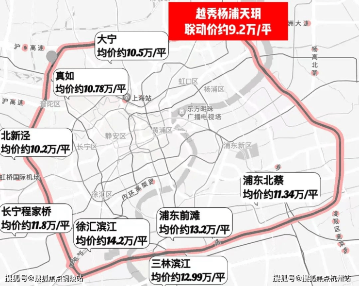 在市区,购房的门槛已经变得异常高昂。观察上海中环周边的热门区域,房价普遍攀升至 每平方米10万至13万之间 。例如,大宁的新房均价已达到10.5万元,真如的新房均价约为10.78万元;徐汇滨江的房价约为14.2万元;前滩的房价约为13.2万元;北蔡的房价也已达到每平方米约11万元。对于那些渴望在中环附近置业的朋友们来说,杨浦区已成为少数几个性价比相对较高的区域之一。特别是北中环沿线附近的越秀·杨浦天玥,其均价为每平方米9.2万元,尤为引人注目。