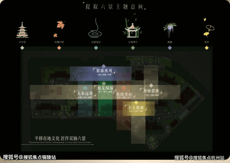 社区内布局“礼序归家轴+景观漫步轴”纵横交织的双轴景观动线,将州桥老街、秋霞圃、远香湖、古猗园、紫藤园、银杏古树等嘉定六景提炼、转译,形成了具有在地文化特色的六大景观主题空间!并以此形成整体约300米的景观纵深,未来将呈现出一个超大的中央公园。