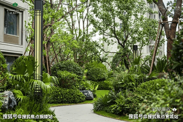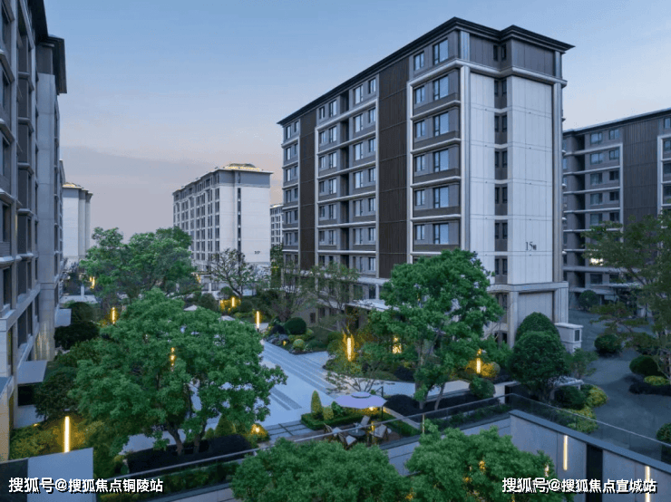 景观上,规划“一环、七园、三巷”的景观布局,打造雅奢酒店式的入户大堂+隐逸摩登都会的园林意境,并参考江南民居“四水归堂”合围而成的庭院,勾勒出动人的中国传统山水画卷。