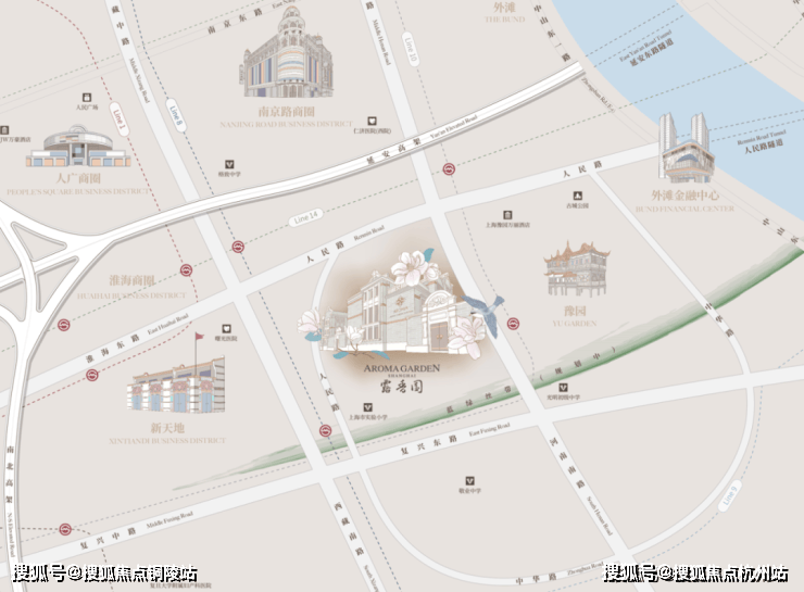 作为上海的绝对市心,露香园直线距离人民广场、淮海路、外滩、豫园等上海市地标性区域均不超过1.5公里,距离陆家嘴直线约2公里。