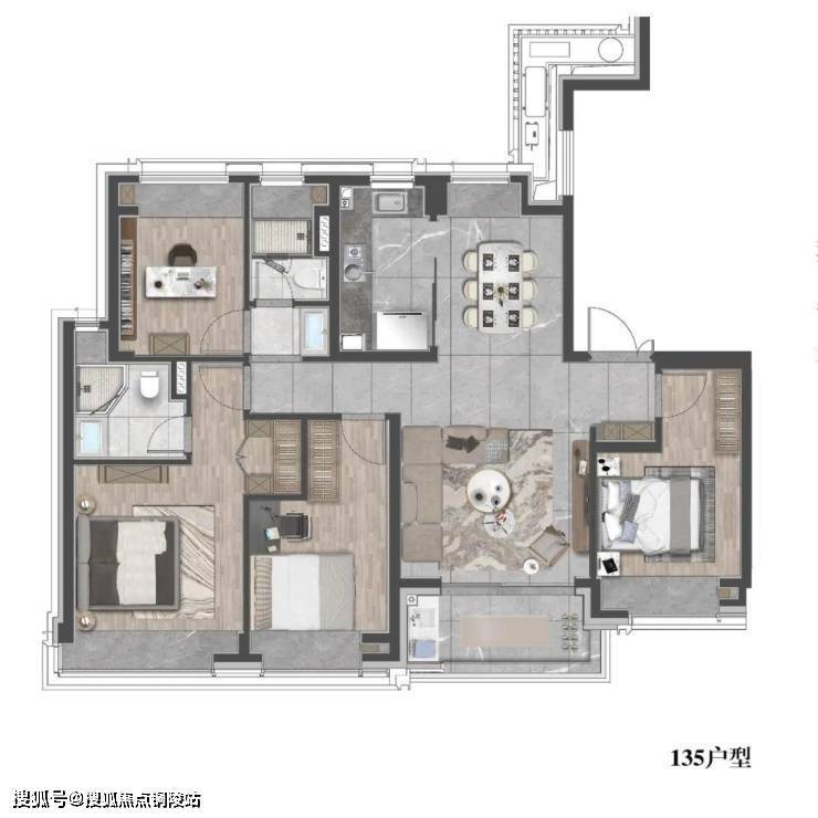 建面约135㎡4房2厅2卫户型图: