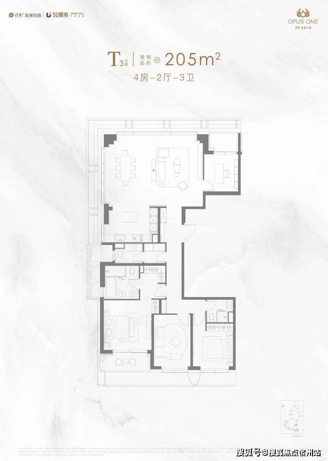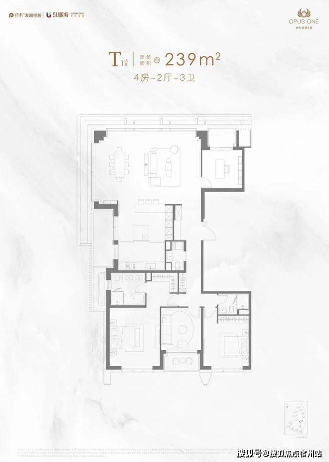 建面约174㎡在做到极致观景面的同时,主卧面宽高达约5.7米,媲美别墅居住体验。