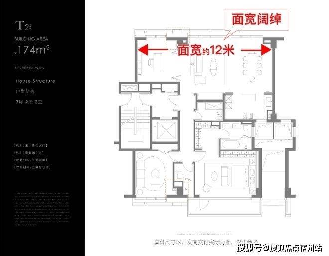 建面约195㎡北向面宽达到约12.5米,堪称 观景面,和黄浦某顶豪275户型面宽数据相近。
