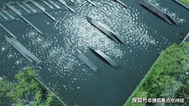 并通过跌水、涌泉和镜面水景等水景组合,将内部水景与外部水岸紧密相连。