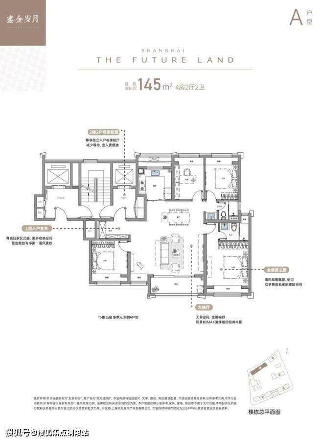 3、建面约145㎡4房:奢阔横厅,定制多元生活场景