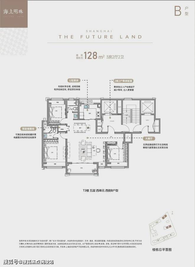 2、建面约128㎡大三房:大横厅设计,重构社交生活主场
