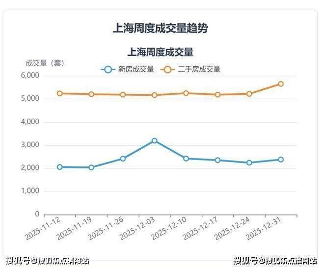 从周度数据看,最近一周(截至2025年12月31日)总成交套数为8032套,环比前一周增长6.8%,其中新房成交套数环比增长6.1%,二手房成交套数环比增长8.3%,短期热度有所回升。