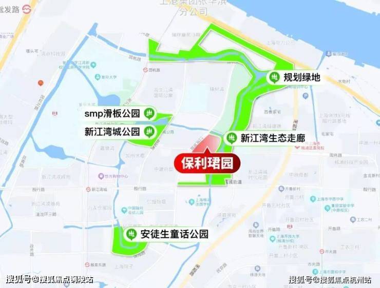 新江湾城拥有四大城市公园,其中项目西侧有约7.35万公顷的新江湾城公园,SMP滑板公园,安徒生公园,项目北侧和东侧是约24万方的生态走廊,还有9条天然水系,聚集了200多种鸟类。