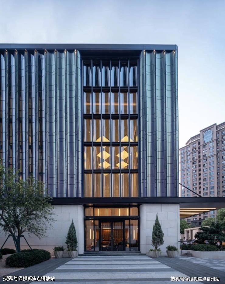 来到项目会所,就被其流光幻彩铝板的外立面所吸引.不同角度有不同颜色呈现,造价昂贵.大堂的玻璃也很吸睛,用的半钢化夹胶反弯弧玻璃,半径仅为约600mm,施工难度大、成本高!