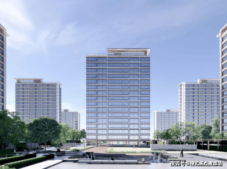 【建筑风格】现代简约风,外立面采用大面积玻璃加铝板,打造非对称L型立面,材质造价更高,抗腐蚀性程度更高。