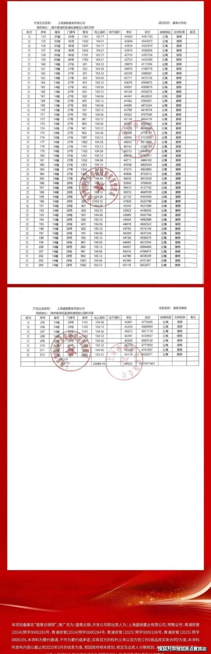 青浦新城「盛青云锦」加推212套建面约103-197㎡3-5房,均价44522元/㎡