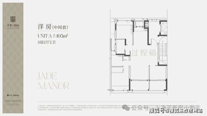 1、约105方边套户型——三房两厅两卫