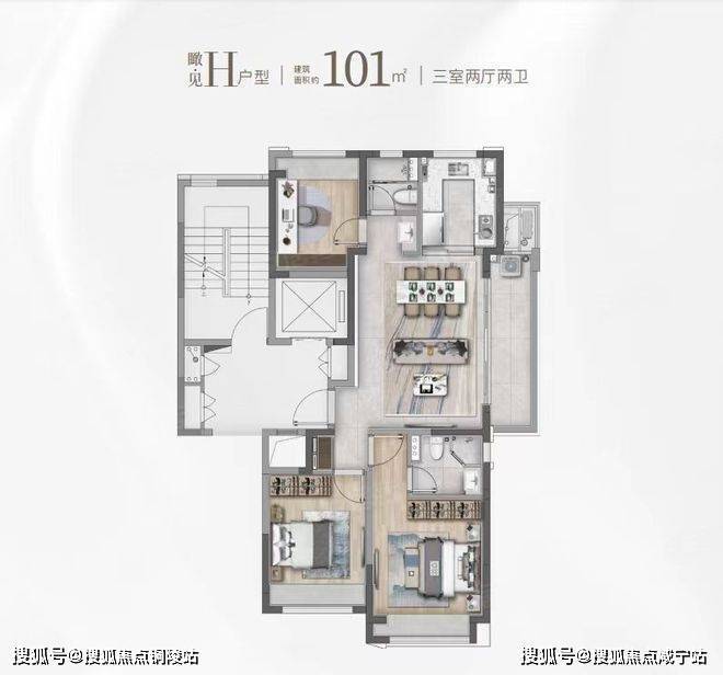 建面约101㎡的F和G户型都是市面上备受认可的飞机经典款户型。