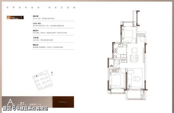 该户型设计精巧,独立玄关保障归家仪式感与收纳需求;客餐厅与厨房一体化设计,动线流畅,空间开阔;两卧均配备飘窗,不仅拓展了使用面积,还实现了互不干扰的私密居住体验;干湿分离的卫生间,更是贴合小家庭日常使用需求。