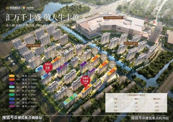 目前,项目定名为招商中旅·观境,主力户型为建面约110㎡3房和约144㎡4房。
