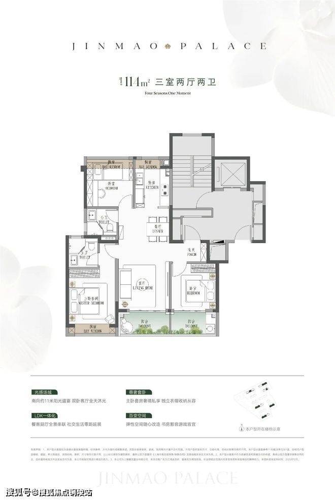 ● 建面约114㎡3房:低总价上车首选,闭眼可冲。