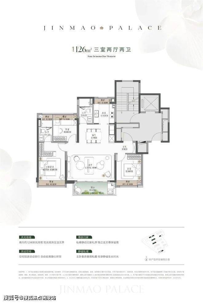 建面约126㎡3房: