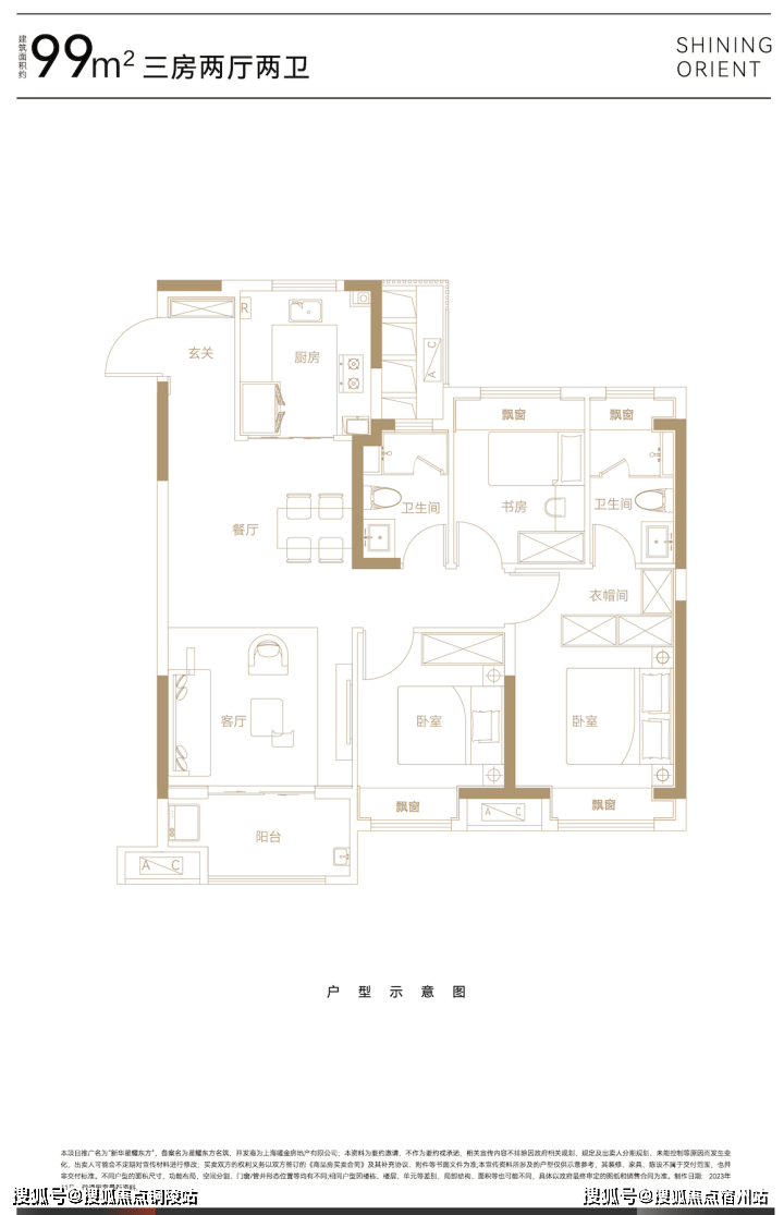 建面约99平㎡三房两厅两卫