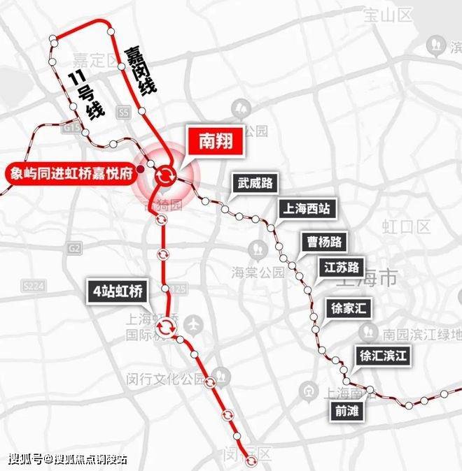 地铁11号线,向东可以直达真如、徐家汇、徐汇滨江和前滩等市区多个CBD,向西可以直达嘉定新城。