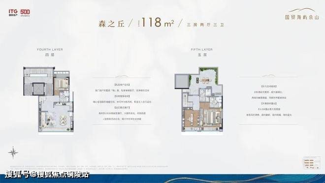市面上大多百平小三房,都是“伪”三房,实际使用起来空间十分局促。国贸海屿佘山售楼处电话:400-9699-334✨【官方认证】✅✅✅户型设计优点:客厅阳台约270度采光体系+南向双飘窗+北房间也能够作成卧室,无连廊的飞机户型,整体的得房率做到了78-80%。