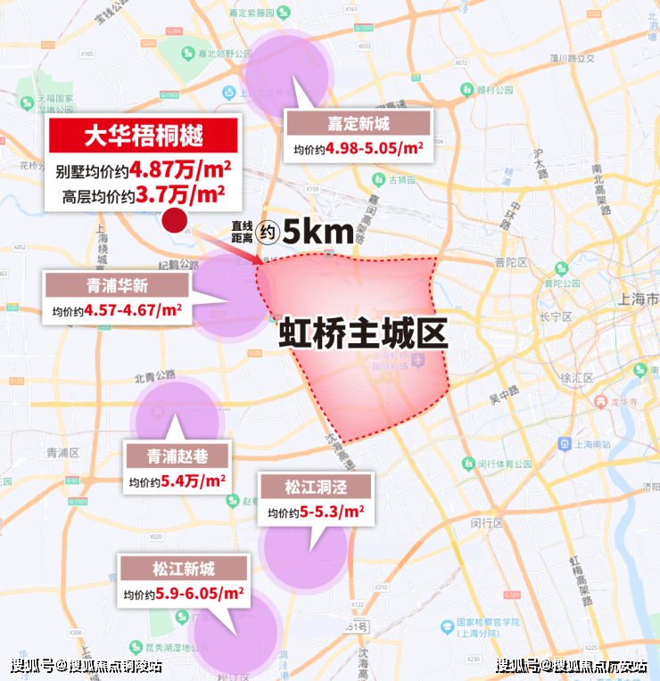 今年大虹桥的上车门槛不断加码,青浦徐泾联动价已攀升到6.95万/㎡,辐射板块如青浦赵巷、嘉定新城,松江新城等,清一色均价来到5万+。