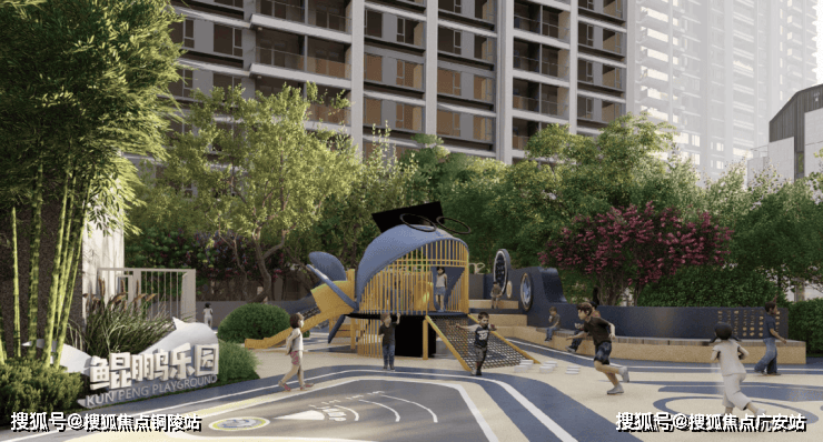 以“鲲鹏乐园”主题儿童乐园、鲲鹏书院、老人颐乐空间、多元艺术花园、约760m“汽车文化”主题跑道、森林漫步道等共享场域为居者构筑一个有温度的社区。