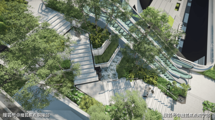 楼王东侧就是三大花园的其中之一,也是艺术感最强的一个花园 ,将结合艺术装置和台阶,为业主提供舒适闲坐、眺望树冠景观的空中露台。
