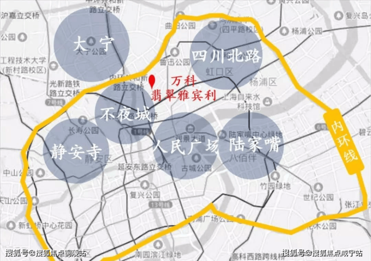 项目距离人民广场约2.5公里,离苏河湾仅1公里,项目周边环伺南京路商圈、陆家嘴商圈、静安寺商圈、苏河湾商圈、四川北路商圈、大宁商圈等多个市级商圈,居住氛围成熟。